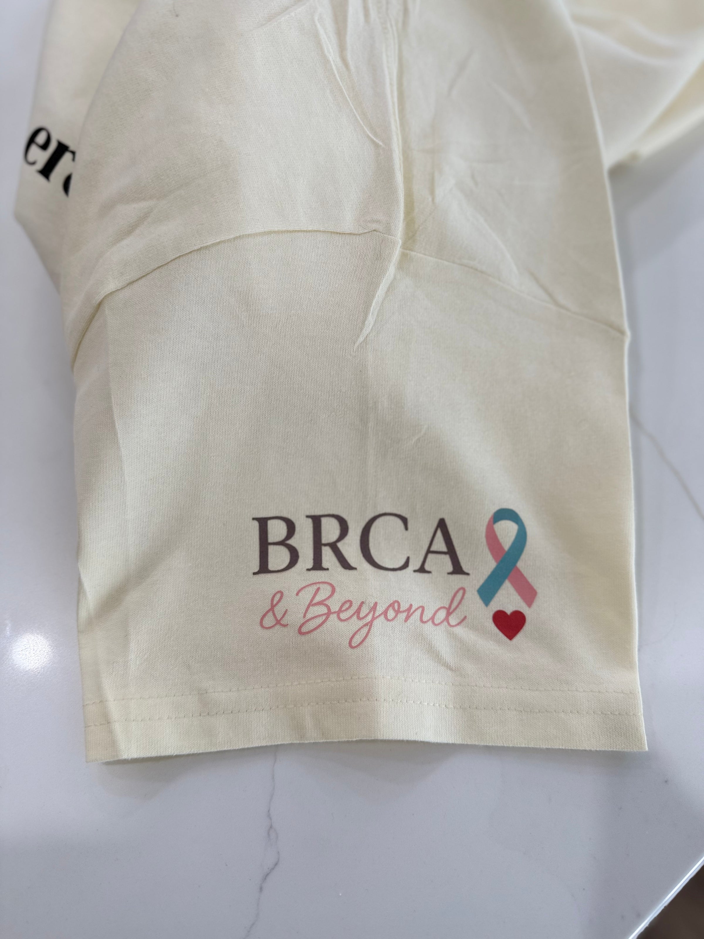 A wearable reminder of strength, choice, and hope. Designed for BRCA & Beyond podcast hosted by Marisa Stachelski—a previvor and colon cancer survivor, this piece honors the journey of previvorship. Featuring the BRCA & Beyond logo on the sleeve. Partial proceeds this October support breast cancer charities.